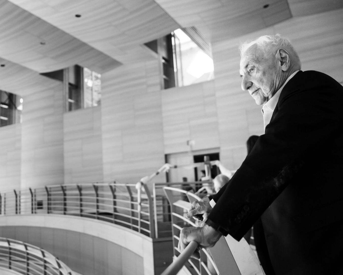 Wir sind tief betroffen über den Tod von Frank Gehry (1929–2025). Seine langjährige Freundschaft mit Daniel Barenboim und Pierre Boulez und seine lebenslange Leidenschaft für Musik ließen ihn einen Raum entwerfen, der für Offenheit, Dialog und aufmerksames Zuhören wie geschaffen ist. Frank Gehrys großes Engagement für das West-Eastern Divan Orchestra und die Barenboim-Said Akademie trugen entscheidend dazu bei, den Pierre Boulez Saal Wirklichkeit werden zu lassen. Der von ihm in und für Berlin gebaute Saal zählt zu seinen persönlichsten Projekten: mit intimer Architektur, in der Musiker:innen und Publikum Klang und Gedanken teilen. Sein Ideen und sein Geist werden hier weiterleben.