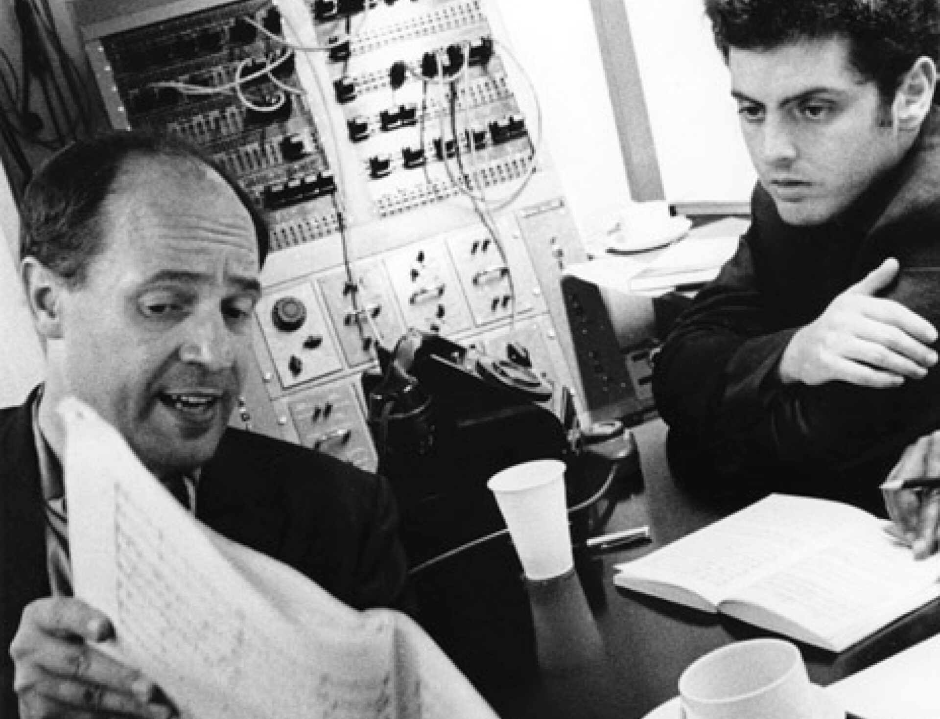 Pierre Boulez with Daniel Barenboim at Abbey Road Studios, London. c.1967 © Lebrecht Media