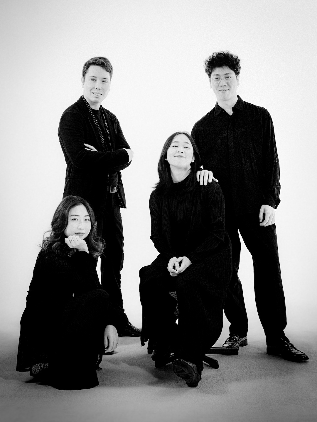 Das 2019 in Berlin gegründete Leonkoro Quartet besteht aus den Brüdern Jonathan (Violine I) und Lukas Schwarz (Violoncello) sowie Amelie Wallner (Violine II) und Mayu Konoe (Viola). Der Name Leonkoro – Esperanto für „Löwenherz“ – spielt nicht zufällig auf Astrid Lindgrens Kinderbuch über zwei Brüder an, das sich auf tröstliche Weise mit dem Thema Sterben beschäftigt – ein Gedanke, dem sich nicht selten auch die Musik widmet. Das Ensemble macht sich innerhalb kürzester Zeit mit einer ganzen Reihe von Auszeichnungen international einen Namen, darunter erste Preise bei den Streichquartettwettbewerben in Bordeaux und an der Londoner Wigmore Hall, der Musikpreis der Jürgen Ponto-Stiftung, der Merito String Quartet Award, der Young Talent Award des Concertgebouw Amsterdam sowie zuletzt der Ensemblepreis der Festspiele Mecklenburg-Vorpommern und der Lotto-Förderpreis des Rheingau Musik Festivals. Von 2022 bis 2024 war das Quartett Mitglied des BBC New Generation Artist Programms. Das Debütalbum der vier Musiker:innen mit Werken von Ravel und Schumann erhielt 2023 den Choc de Classica l’année. Ihr zweites Album Out of Vienna mit Musik von Haydn und Berg sowie Erwin Schulhoffs Fünf Stücken für Streichquartett erschien diesen Monat. Nach zahlreichen erfolgreichen Debüts bei den wichtigsten internationalen Konzertreihen und Festivals in den vergangenen Jahren ist das Leonkoro Quartet 2025/26 u.a. erstmals in der Carnegie Hall in New York, in der Melbourne Recital Hall und am Ukaria Cultural Centre in Adelaide zu Gast und präsentiert seit dieser Spielzeit zusammen dem Simply Quartet eine eigene Reihe im Wiener Konzerthaus.