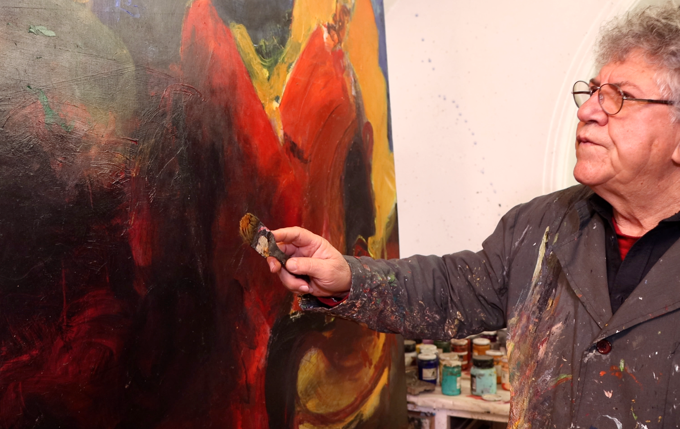 Ausstellung 0„Sobald ich den Pinsel in die Hand nehme, habe ich keine Kontrolle mehr, sondern das Gemälde hat das Sagen“, erklärt Jaber Alwan. Werke des irakischen Künstlers, der 1948 in einem Dorf nahe Babylon geborenen wurde, repräsentieren im Rahmen der diesjährigen Arabic Music Days die bildenden Künste. Wir haben Jaber Alwan in seinem Atelier in Rom besucht. Er erzählte unter anderem von seiner Werkauswahl für die Arabic Music Days und Themen, die ihn zurzeit beschäftigen, davon, welche Bedeutung die Ruinen von Babylon für ihn haben und wie Musik seine Malerei beeinflusst.